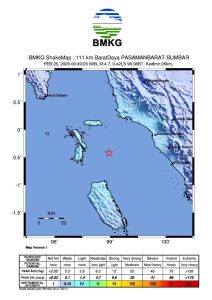 Hari Kamis 26 Februari 2026 pukul 00.49.28 WIB wilayah Pantai Barat Pasaman Barat, Sumatera Barat diguncang gempa tektonik. Hasil analisis BMKG menunjukkan gempabumi ini memiliki parameter update dengan magnitudo M4,7. Episenter gempabumi terletak pada koordinat 0,42° LS ; 98,98° BT, atau tepatnya berlokasi di laut pada jarak 111 Km BaratDaya PASAMANBARAT-SUMATERA BARAT pada kedalaman 24 km.