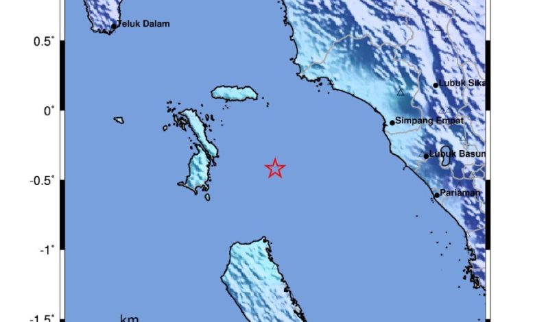 GEMPABUMI TEKTONIK M5,0 DI PANTAI BARAT SUMATERA, PASAMAN BARAT, SUMATERA BARAT, TIDAK BERPOTENSI TSUNAMI