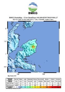 Hari ini Minggu (23/11/2025) pukul 10:19:57 WIB wilayah Halmahera Timur, Maluku Utara diguncang gempa tektonik.