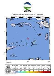 Hari Kamis (1/1/2026) pukul 10:05:25 WIB wilayah Laut Banda, Maluku diguncang gempa tektonik.